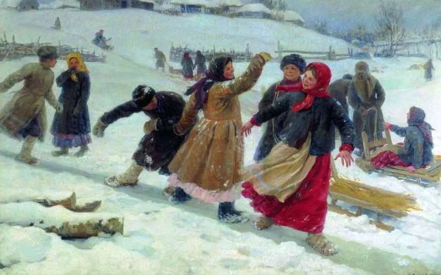 Дети активно проводили время на улице, играя в снежки или катаясь с горки, а к ним часто присоединялись молодые люди и девушки. Вечером, после веселья, они загадывали друг другу загадки.