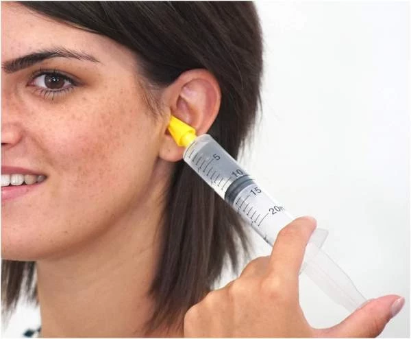 Если пробка не выходит после использования растворов, можно промыть слуховой проход теплой водой. Для этого используйте шприц без иглы (около 200 мл) или душевой шланг без насадки. Промывание должно проводиться очень осторожно, чтобы не повредить ухо. Важно помнить, что промывание категорически запрещено, если ухо воспалено или болит.